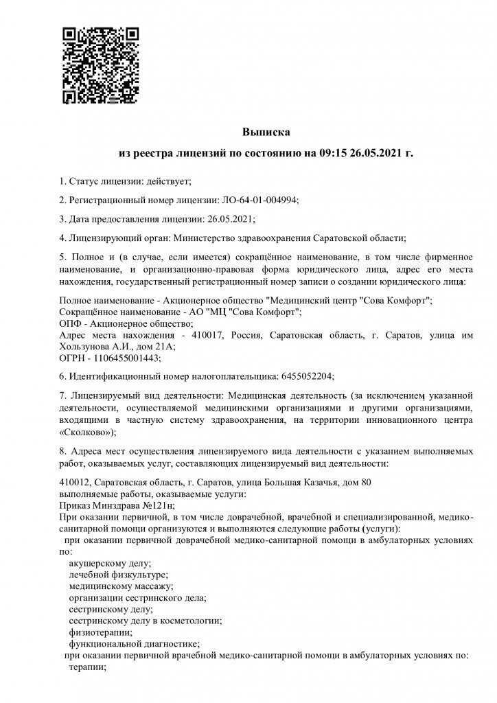 Диапазоны цен на приём врачей и специалистов, услуги и диагностику в Сова Comfort (Сова Комфорт) в Саратове.